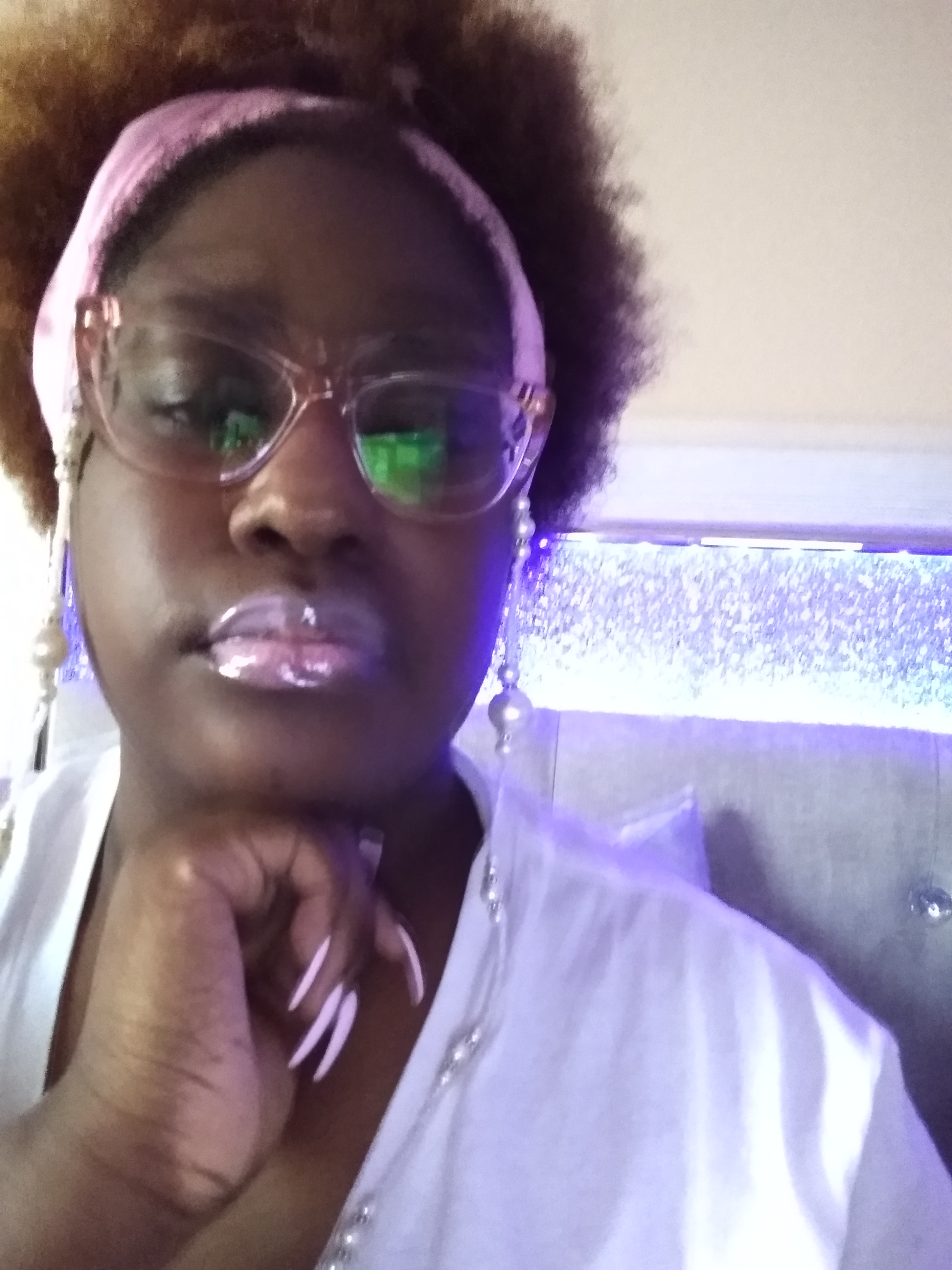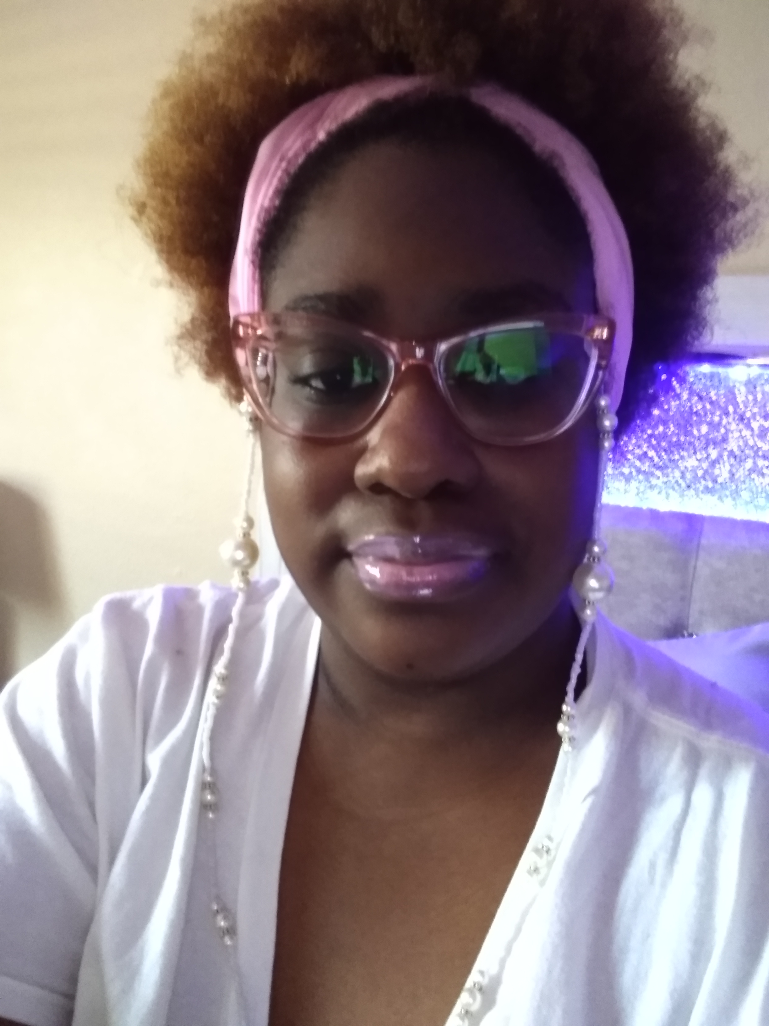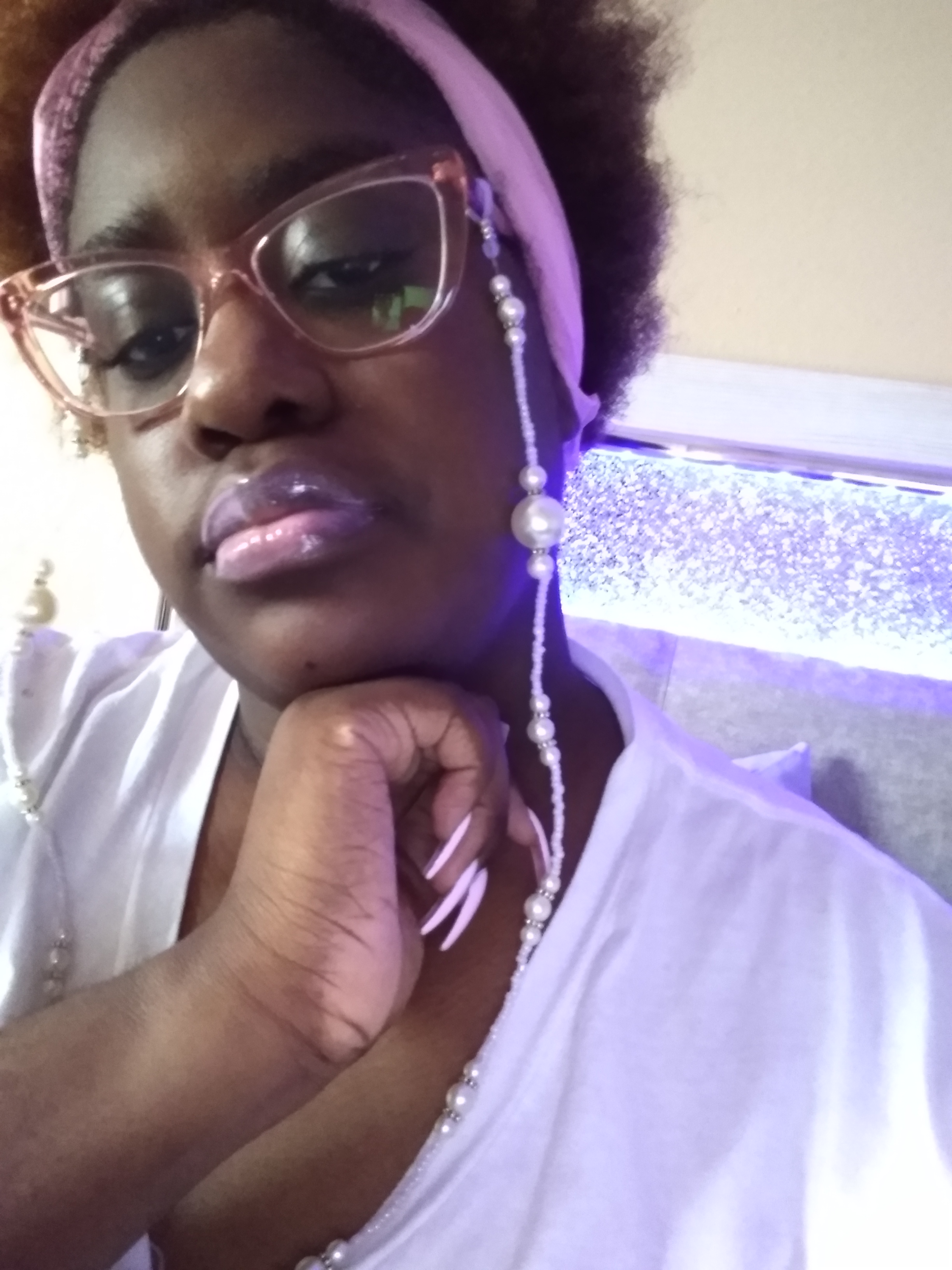 I THINK THEY’RE, SO MANY LITTLE THINGS, WE MISS IN FASHION, AND BEAUTY, THAT COULD REALLY BENEFIT US, AND OPEN OUR MINDS, TO SO MUCH CREATIVITY. I AM PICTURED, WITH A BARBIE-PINK HEADBAND, BARBIE-PINK CAT EYEGLASSES, WITH A PEARL EMBELLISHED, EYEGLASS CHAIN. THAT MATCHES THE CRISP, WHITE OF MY SHIRT. I PAIRED MATCHING PEARLESCENT SHIMMERY LIPGLOSS, TO MATCH THE GLASSES AND I PAIRED BALLERINA, MILKY, BABY-BARBIE-PINK NAILS. I JUST LOVE, HOW THE GLASSES, REALLY SET OF THE TONE, OF THE LIPGLOSS, AND THE JEWELRY, OF THE CHAIN. THE GLASSES ARE ALMOST TREATED HERE LIKE A FINE GLASS PIECE OF EYEWEAR JEWELRY, THE WAY, THE LIPGLOSS, SHIMMERS OFF, EVERY ANGLE, AND SHAPE, OF THE GLASSES. EVEN SOMETHING, AS SIMPLE, AS THIS, IS A TREND. AND CAN BE BROADENED, TO NEW HIGHTS FOR SOME OF YOU FASHIONISTAS OUT THERE.