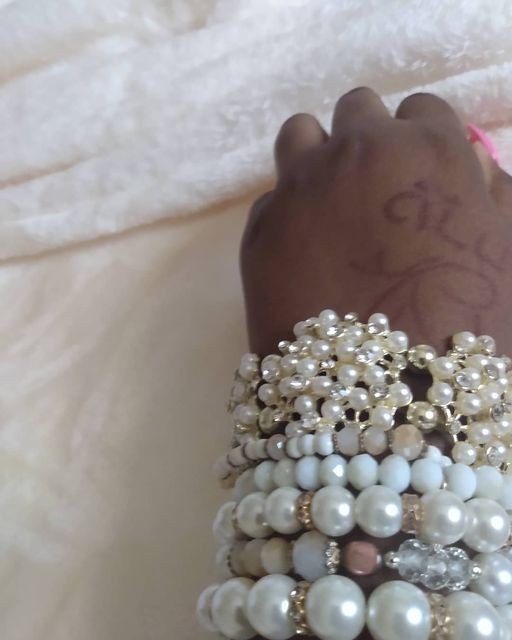 SO HERE I STYLED, A WHITE HIJAB, WITH MILKY, CUPCAKE FROSTING, WHITE PEARLS, MY FAVORITE BARBIE GLAZED PINK LIPGLOSS, AND FOR A POP OF COLOR, MY HOT BARBIE PINK NAILS. FOR THE REST, OF THE JEWELRY, I CHOSE PIECES, THAT REMIND ME OF, THE JEWISH CULTURE, MY FATHER’S INTERPRETATION. I PAIRED IVORY-STONE, AND BED, AND MILKY, WHITE PEARL BRACELETS, STACK, AND MY NATURAL-TONE TOMS. I ALSO PAIRED, MY FAVORITE ACCESSORY OF THIS OUTFIT. MY BAG, THAT I CALL MY JEWISH TARA’ANANKORAH.