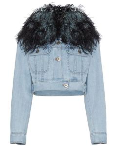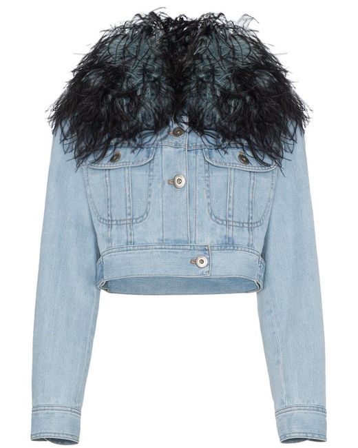 prada-Blue-Cropped-Denim-Jacket-With-Feather-Collar