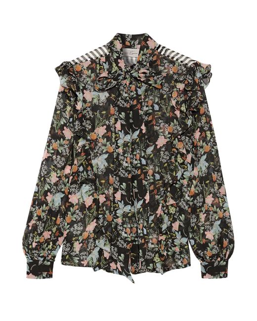 preen-by-thornton-bregazzi-Black-Annie-Pussy-bow-Printed-Silk-chiffon-Blouse