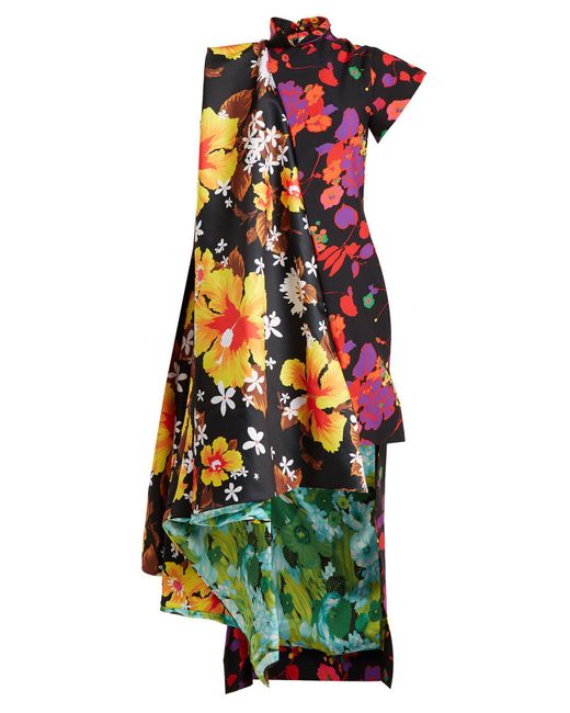 richard-quinn-BLACK-MULTI-Contrast-panel-Dip-hem-Floral-print-Satin-Dress