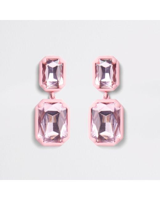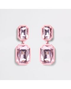 river-island-pink-Pink-Coated-Rectangle-Crystal-Drop-Earrings