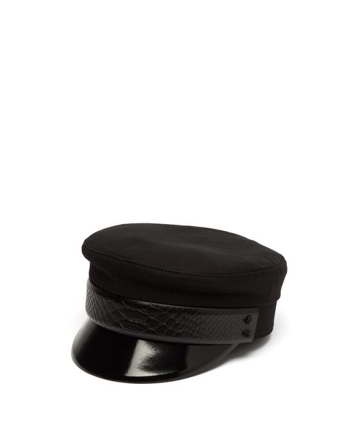 ruslan-baginskiy-black-Crocodile-effect-Leather-Baker-Boy-Cap