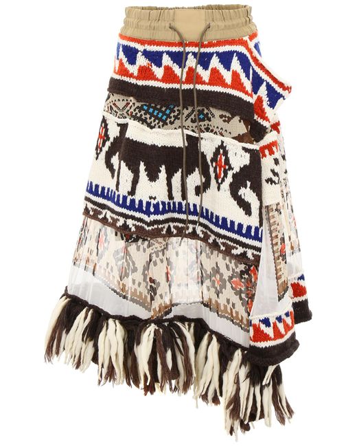 sacai-BeigeWhiteBrown-Aztec-Skirt-With-Fringes