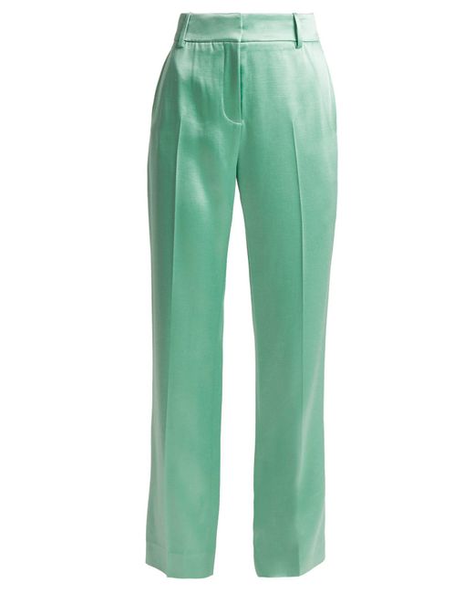sies-marjan-designer-green-Tatum-Straight-Leg-Satin-Trousers