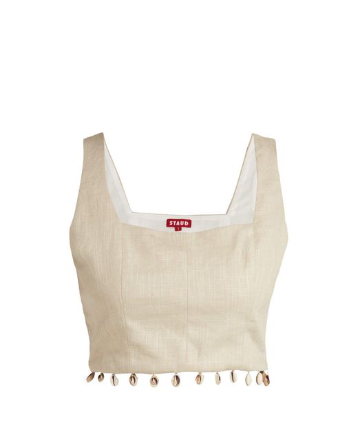 staud-khaki-Fromer-Shell-Trimmed-Linen-Blend-Crop-Top