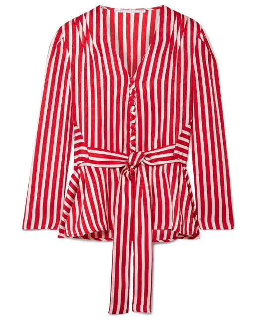 stella-mccartney-red-Striped-Silk-moire-Peplum-Blouse