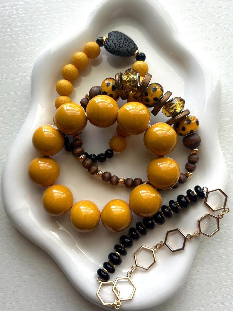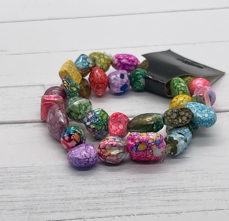 FOR THE REST OF THE ACCESSORIES, I PAIRED A LILAC-PURPLE HANDBAG, WITH LAVENDER BARBIE PINK NAILS. I PAIRED AN ETSY MULTI-COLOR ROCK STACKED BRACELETS, ON ONE HAND. AND I PAIRED ETSY RETRO MULTI-COLOR BANGLES ON THE OTHER HAND.