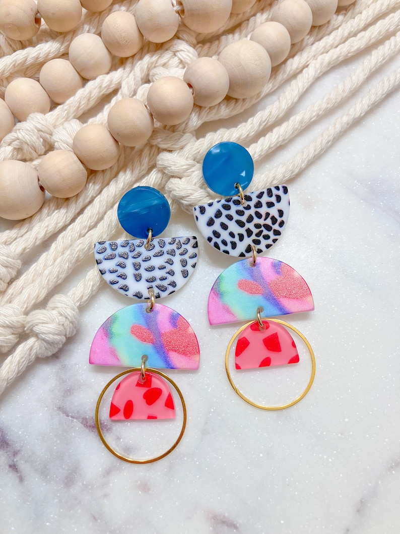 I PAIRED ETSY RETRO VINTAGE MULTI-COLOR AND MULTI-PRINT GEOMETRIC CHANNDELIER EARRINGS, WITH BARBIE LAVENDER-PINK LIPSTICK, THAT I PAIRED WITH KARL LAGERFELD, BARBIE-PINK TRENCH COAT, THAT WILL BE PAIRED OPEN, OVER A CYNTHIA ROWLEY, PINK AND ORANGE STRIPED TURTLENECK TOP, PAIRED UNDERNEATH A VICTORIA BECKHAM, ORANGE DRESS, WITH A TURQUOISE BLUE WAIST BELT, AROUND THE DRESS. I PAIRED THE OUTFIT WITH BARBIE-PINK TIGHTS, AND BRIGHT-ORANGE PLATFORM ANKLE-STRAP SATIN PUMPS.