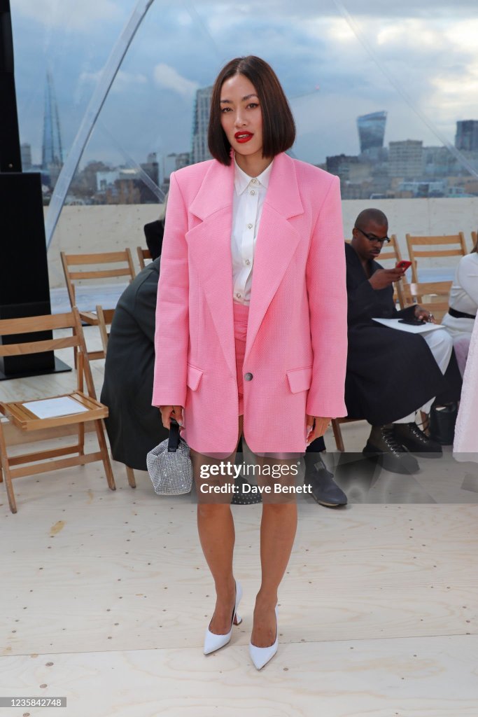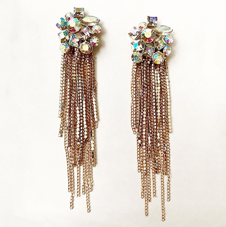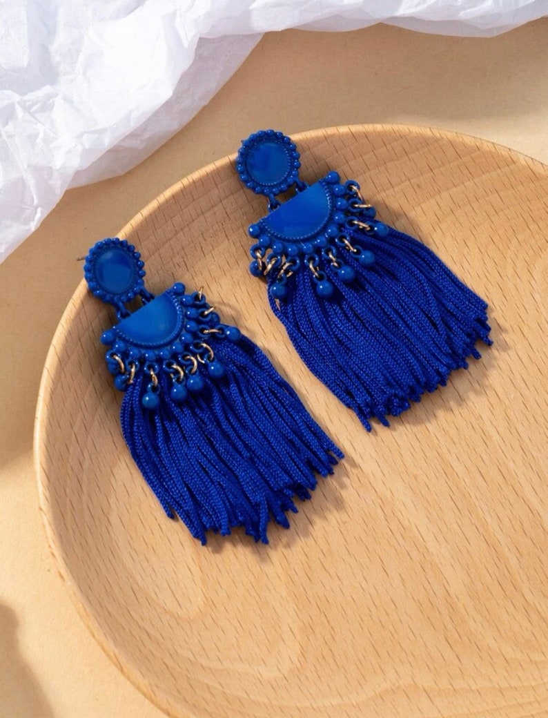 I PAIRED ETSY VINTAGE PURPLE CLUSTER EARRINGS, WITH BARBIE-PINK LIPSTICK, PAIRED WITH XANDRES, BLUE BLAZER, PAIRED OPEN OVER A ETRO, WHITE BOW BLOUSE. THAT WILL BE TUCKED INTO A CAROLINA HERRERA, YELLOW-EMBROIDERED, WOOL MINI SKIRT. I PAIRED WITH INDIGO-BLUE TIGHTS, AND LAVENDER-PURPLE SUEDE PLATFORM ANKLE STRAP SANDALS.