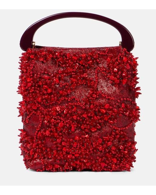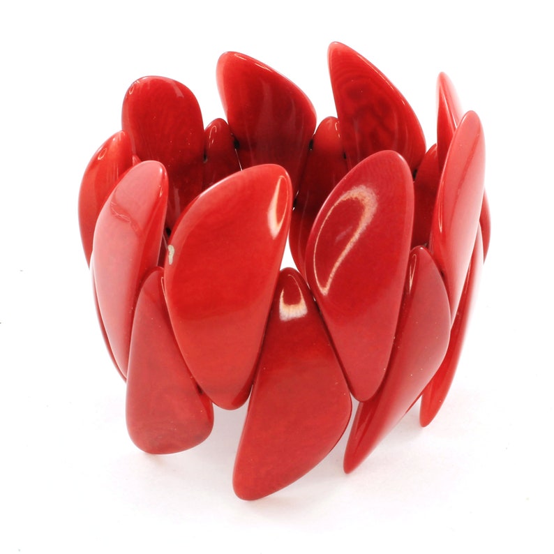 FOR THE REST OF THE ACCESSORIES, AND JEWELRY, I PAIRED A FENDI, BLUE-MONOGRAM ENGRAVED GOLD HANDBAG, AND BRIGHT RED NAILS. FOR THE REST OF THE JEWELRY, I PAIRED ETSY, RED STONE STRETCH CUFF BRACELET.