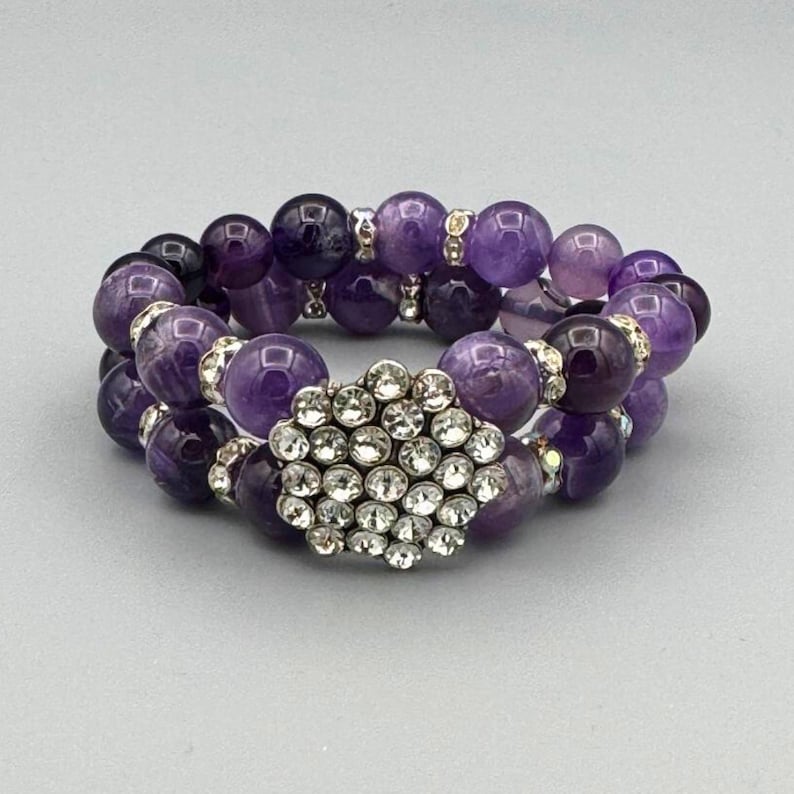 FOR THE REST OF ACCESSORIES, AND JEWELRY, I PAIRED A PURPLE CRYSTAL-EMBELLISHED HANDLEBAG, WITH BARBIE-PINK NAILS, AND AN ETSY PURPLE-TURQUOISE STONE RING, PAIRED WITH ETSY SILVER BROOCH, PURPLE CRYSTAL BEAD BRACELETS. I PAIRED A DARK BLACK AND PURPLE, STRETCH CUFF BRACELET, ON THE OTHER HAND.