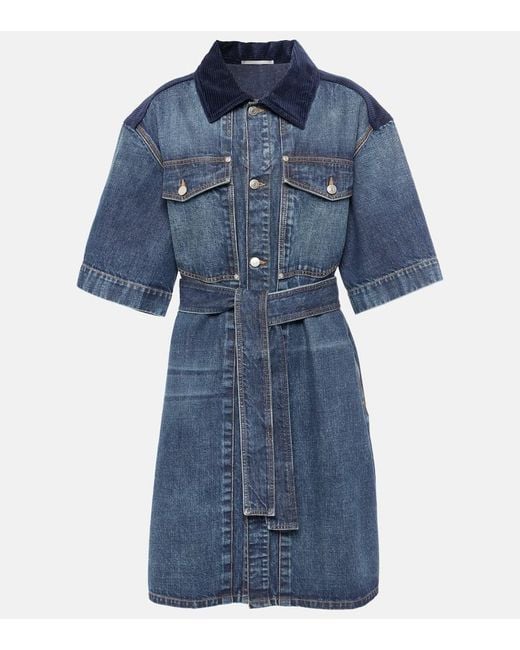 I PAIRED A BLUE BRIMMED HAT, WITH ETSY RED CHANDELIER EARRINGS, BRIGHT-RED LIPSTICK, PAIRED WITH A DSQUARED, DARK-BLUE DENIM WASHED JACKET, PAIRED OVER A STELLA MCCARTNEY, DENIM COLLARED DRESS, WITH A BLUE WOOVEN WAIST BELT, AROUND THE CLOSED DENIM JACKET AND DRESS. I PAIRED THE OUTFIT WITH DSQUARED, DARK DENIM WASHED BOYFRIEND JEANS, AND AMINA MUADDI, LIGHT-BLUE DENIM SLING-BACK PUMPS.
