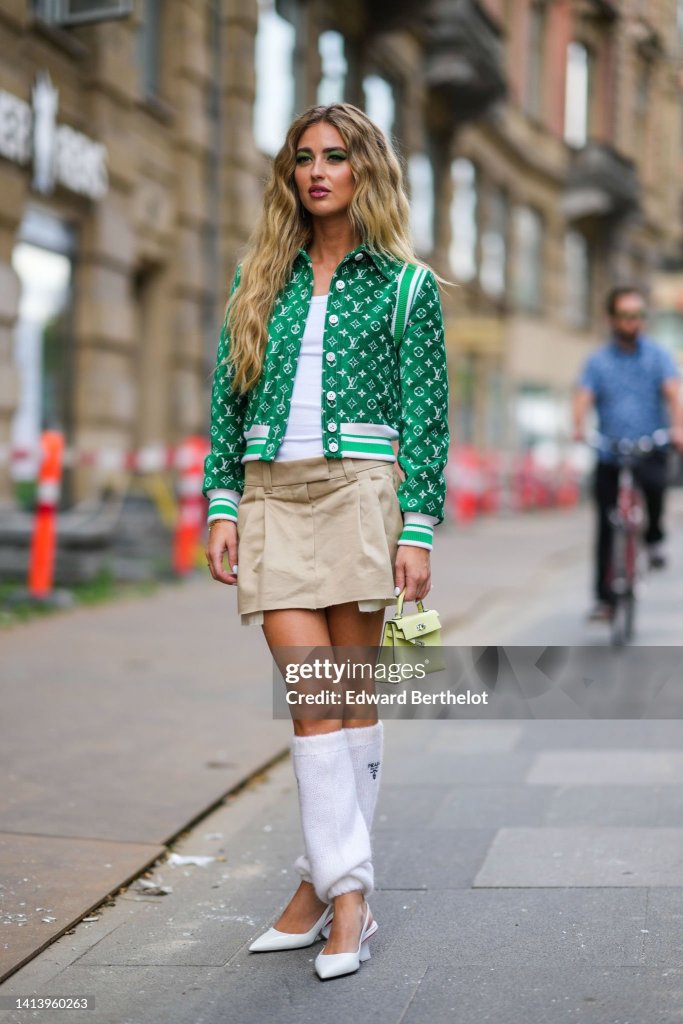 THIS OUTFIT EMILI SINDLEV IS WEARING IS SO ME I LOVE ANYTHING PINK THAT PAYS HOMAGE TO BARBIE. SO, LETS GET INTO DISCUSSING WHAT SHE IS WEARING. EMILI IS WEARING A PINK FUR COAT THAT SHE STYLED WITH A PINK DENIM SKIRT PAIRED WITH WHITE GAITERS AND PASTEL PINK PATENT SANDAL HEELS. SHE ACCESSORIZED HER OUTFIT WITH A GREEN HANDBAG. I DECIDED TO RECREATE THE LOOK OF THE PINK FUR COAT PAIRED WITH A PINK SKIRT.