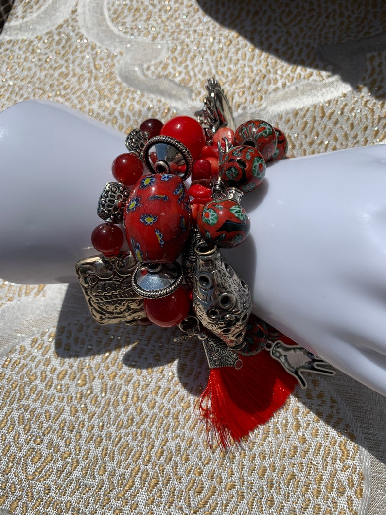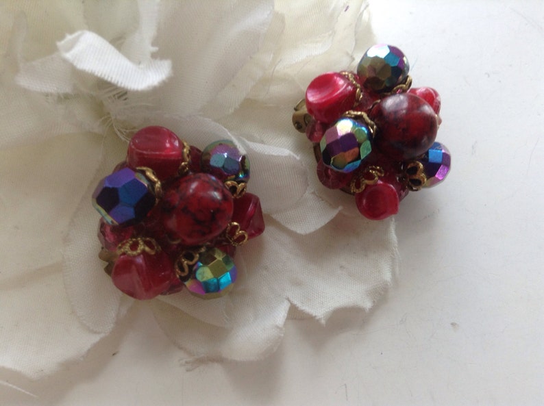 I PAIRED ETSY MAGENTA AND PURPLE VINTAGE EARRINGS, WITH A MSGM PINK FUR COAT, PAIRED OVER A COSTARELLOS PINK CHIFON BOW BLOUSE, THAT WILL BE TUCKED INTO A HUNZA G DESIGNER PINK MINI SKIRT, PAIRED WITH BLUE TIGHTS, AND BLUE, PINK, PURPLE, AND RED FLORAL BOW PLATFORM SANDALS. FOR THE REST OF THE ACCESSORIES, AND JEWELRY, I PAIRED A BLUE LEATHER HANDBAG BY BOTTEGA VENETA AND ETSY MULTI-COLOR BEAD STONE BRACELETS ON ONE HAND. AND ON THE OTHER HAND, I PAIRED ETSY PURPLE STONE AND BEAD BRACELETS STACK.
