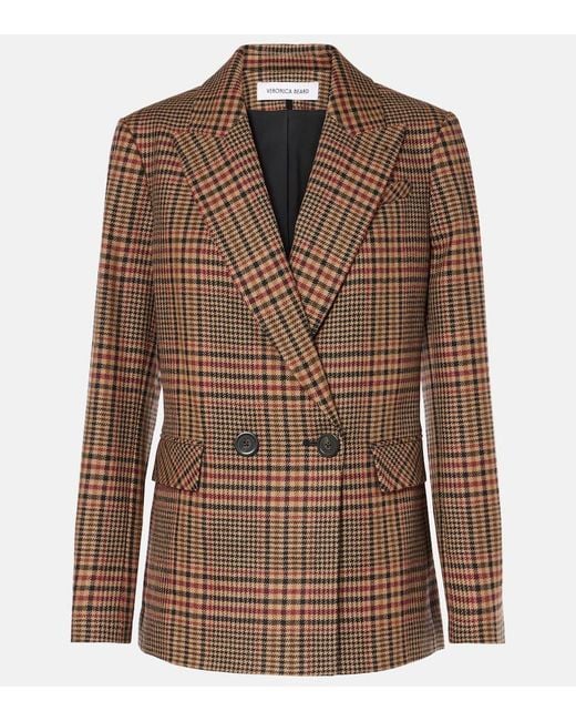TIFFANY HSU STYLED A CHECKED GRAY AND BLUE BLAZER, OVER A WHITE TEE, THAT SHE TUCKED INTO A MATCHING CHECKED GRAY, AND BLUE BLAZER, PAIRED WITH CLEAR WHITE TOE RING SANDALS, WITH A LAVENDER PURPLE PEDI, AND A LAVENDER PURPLE HANDBAG.