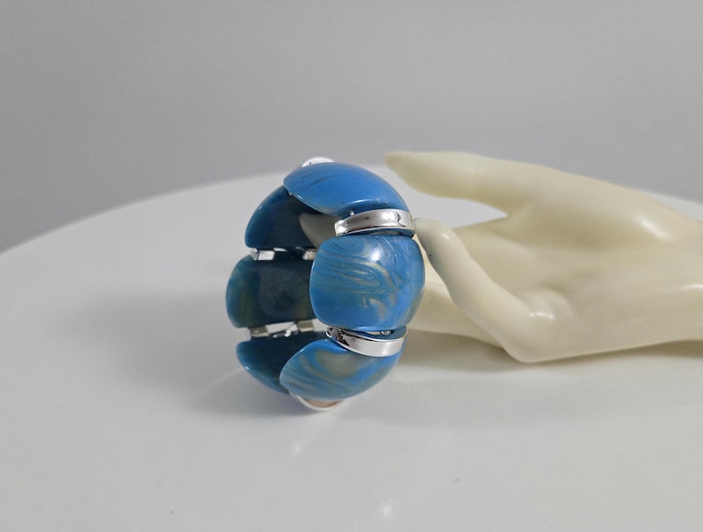 FOR THE REST OF THE JEWELRY, I PAIRED A METALLIC JIMMY CHOO, BOW HANDLE BAG. THAT I PAIRED WITH BRIGHT RED NAILS, AN ETSY INDIGO BLUE STONE RING, WITH ETSY PEACOCK TEAL-BLUE STRETCH CUFF BRACELET, ON ONE HAND. I PAIRED INDIGO-BLUE, MARBLE-STONE STACKED BRACELETS, ON THE OTHER HAND.