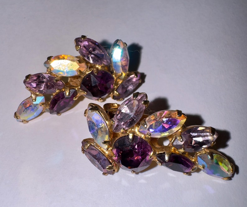 I PAIRED ETSY IRIDESCENT CHANDELIER EARRINGS, WITH BARBIE FUCHSIA-PINK LIPSTICK, PAIRED WITH A CARLA MONTANARINI, PURPLE-LILAC BLAZER, THAT WILL BE WORN OPEN OVER A ETRO, WHITE PAISLEY BLOUSE. THAT WILL BE TUCKED INTO DOLCE AND GABBANA, WHITE-SILK, PURPLE ASIAN-INSPIRED FLORAL PRINT PANTS. I PAIRED THE OUTFIT WITH BRIGHT-PINK TIGHTS AND BARBIE- PINK PATENT PUMPS.