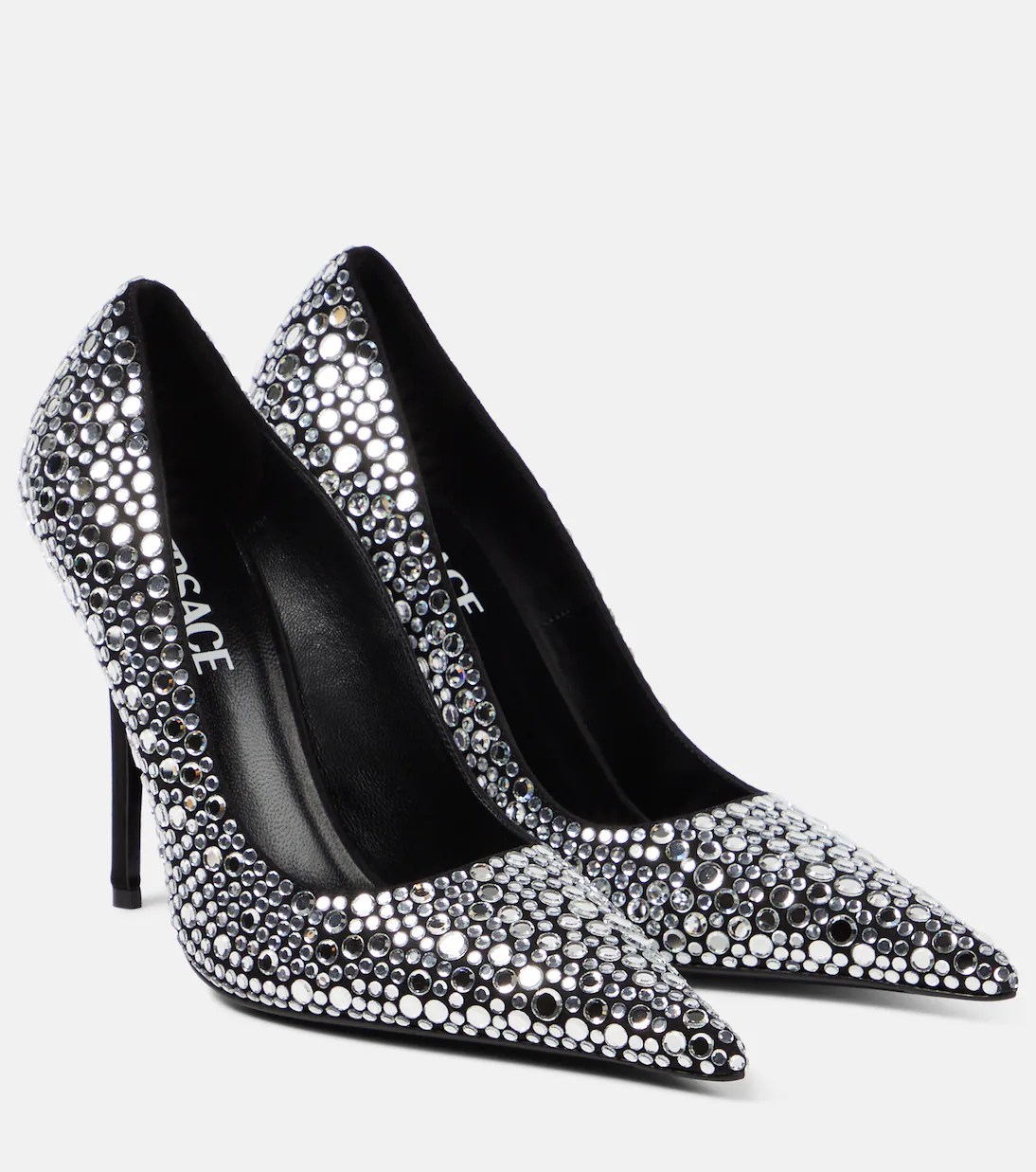 I PAIRED ETSY SILVER CHANDELIER EARRINGS, WITH BARBIE-PINK LIPSTICK, PAIRED WITH A HALFBOY, SILVER METALLIC BIKER JACKET, THAT WILL HANG OFF-THE-SHOULDERS, OVER A THE ATTICO, BLACK ASYMMETRIC EMBELLISHED HALTER TOP, THAT I PAIRED WITH DSQUARED BLACK DISTRESSED BOYFRIEND JEANS, BLACK TIGHTS, AND VERSACE, SILVER METALLIC ANKLE-STRAP PLATFORM PUMPS.