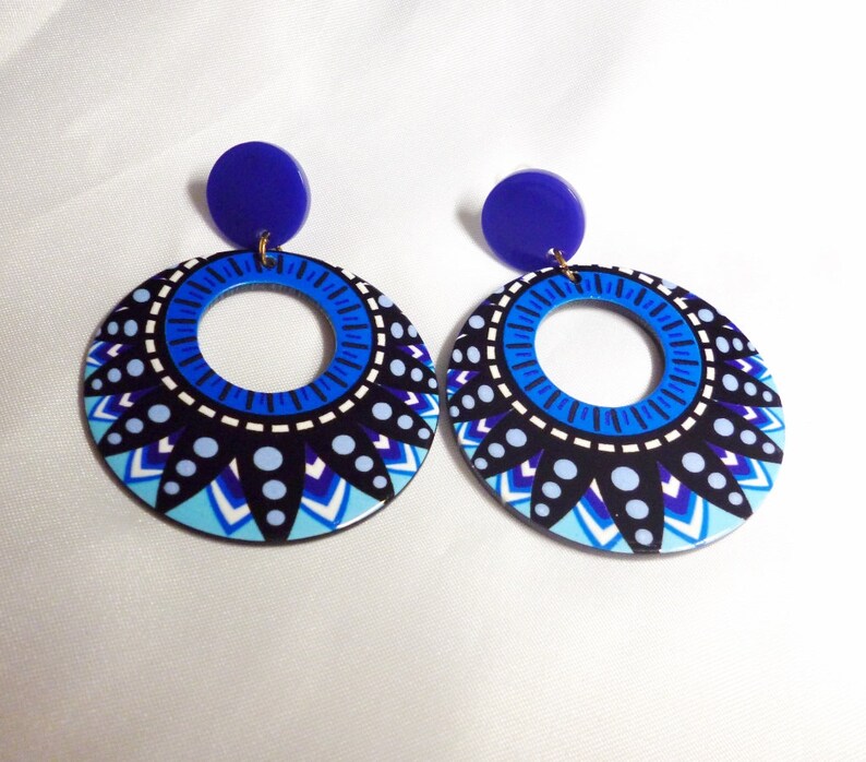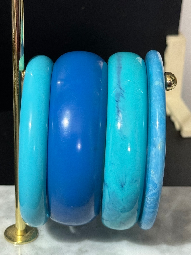 I PAIRED ETSY BLUE RETRO EARRINGS WITH A MARNI BLACK AND WHITE GINGHAM BOMBER JACKET THAT I PAIRED OVER A SCOTCH SODA, BLUE COLLARED SHIRT WORN UNDERNEATH AN ALBERTA FERRETTI, METALLIC TEAL-BLUE SWEATER, WITH A BLACK AND RED CHERRY PRINT BELT, TIED AROUND THE SWEATER. I PAIRED THE OUTFIT WITH A MARNI RED AND BLACK POLKA DOT SKIRT, TEAL BLUE TIGHTS, AND BLUE PLATFORM PUMPS. FOR THE REST OF THE ACCESSORIES AND JEWELRY I PAIRED A GREEN HANDBAG AND ETSY BLUE CERAMIC BANGLES STACK.