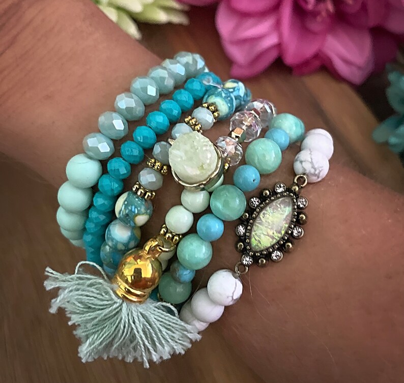 FOR THE JEWELRY, I DECIDED TO TAKE A BOLDER ROUTE, I PAIR PASTEL-BLUE CRYSTAL DROP CHANDELIER EARRINGS, WITH A BLUE BEADED IRIDESCENT CRYSTAL STACKED BRACELETS, TO FINISH THE LOOK OFF. I WAS DEEPLY INSPIRED BY THIS LOOK AND IM SURE YOU ARE AS WELL THE COLOR SCHEME OF THIS FASHION STYLIST WAS SPLENDINDLY UNIQUE AND OUTSTANDING.