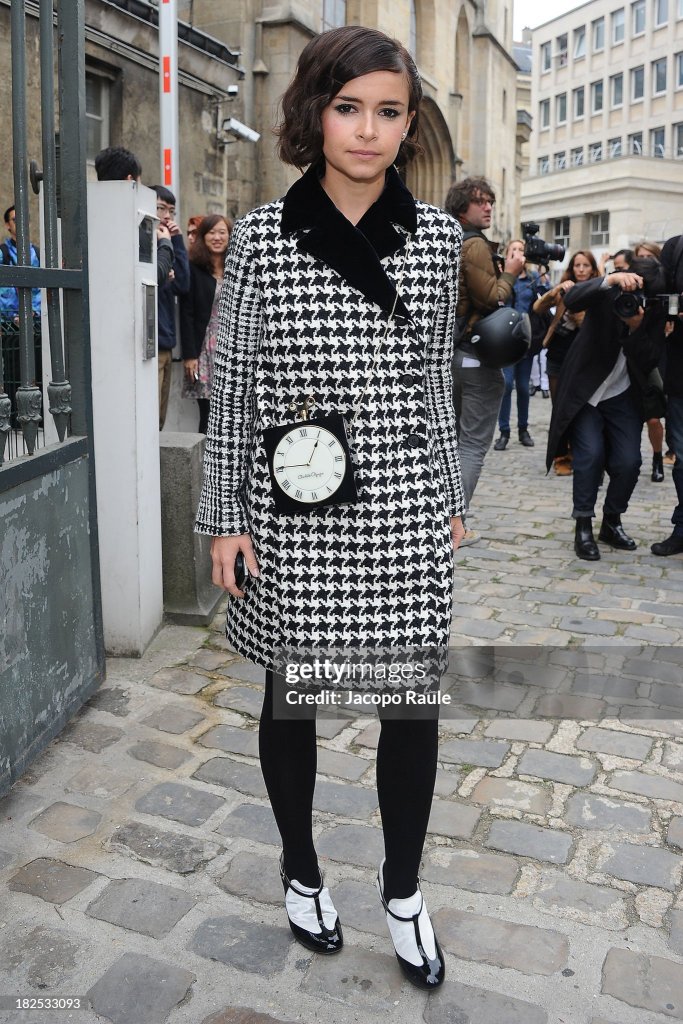 MIROSLAVA DUMA IS WEARING BROWN AND BLACK PRESCRIPTION EYEGLASSES WITH A BLACK AND YELLOW PLAID JACKET WITH A DARK GREEN CHUNKY SWEATER UNDERNEATH. THAT SHE PAIRED WITH A BLACK YELLOW AND GREEN PLAID MATCHING SKIRT. SHE PAIRED HER OUTFIT WITH CLASSIC BLACK TIGHTS AND BLACK STRAPPY PLATFORMS. MY FAVORITE PART ABOUT THIS LOOK WOULD BE THE PLAY ON PLAID MATCHING PIECE, THE WAY SHE PAIRED A BOLD BLACK PATENT LEATHER BELT WITH THE COMPLIMENTING BLACK TIGHTS THAT SETS THE STAGE FOR THE PLATFORMS.