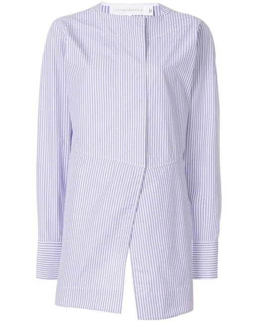 victoria-beckham-Pink-Purple-Pinstripe-Oversize-Wrap-Shirt