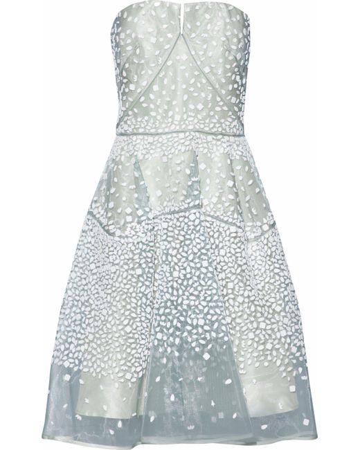 zac-posen-White-Strapless-Beaded-Organza-Dress