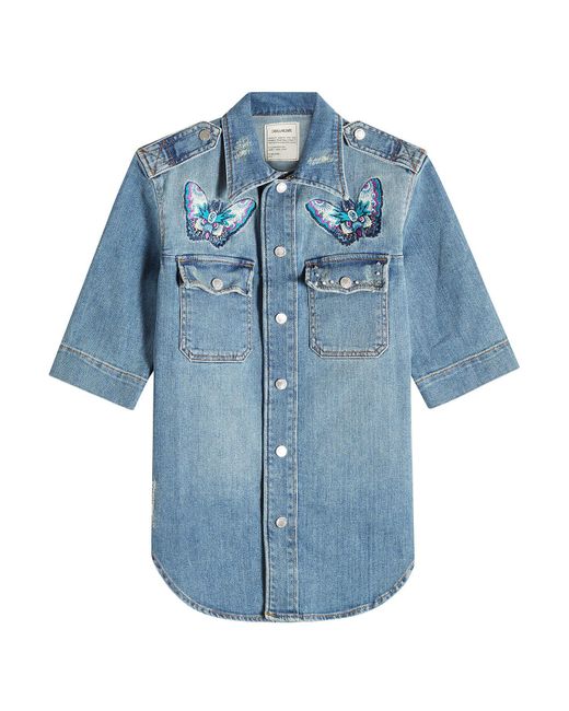 zadig-and-voltaire-denim-Denim-Shirt-With-Butterflies
